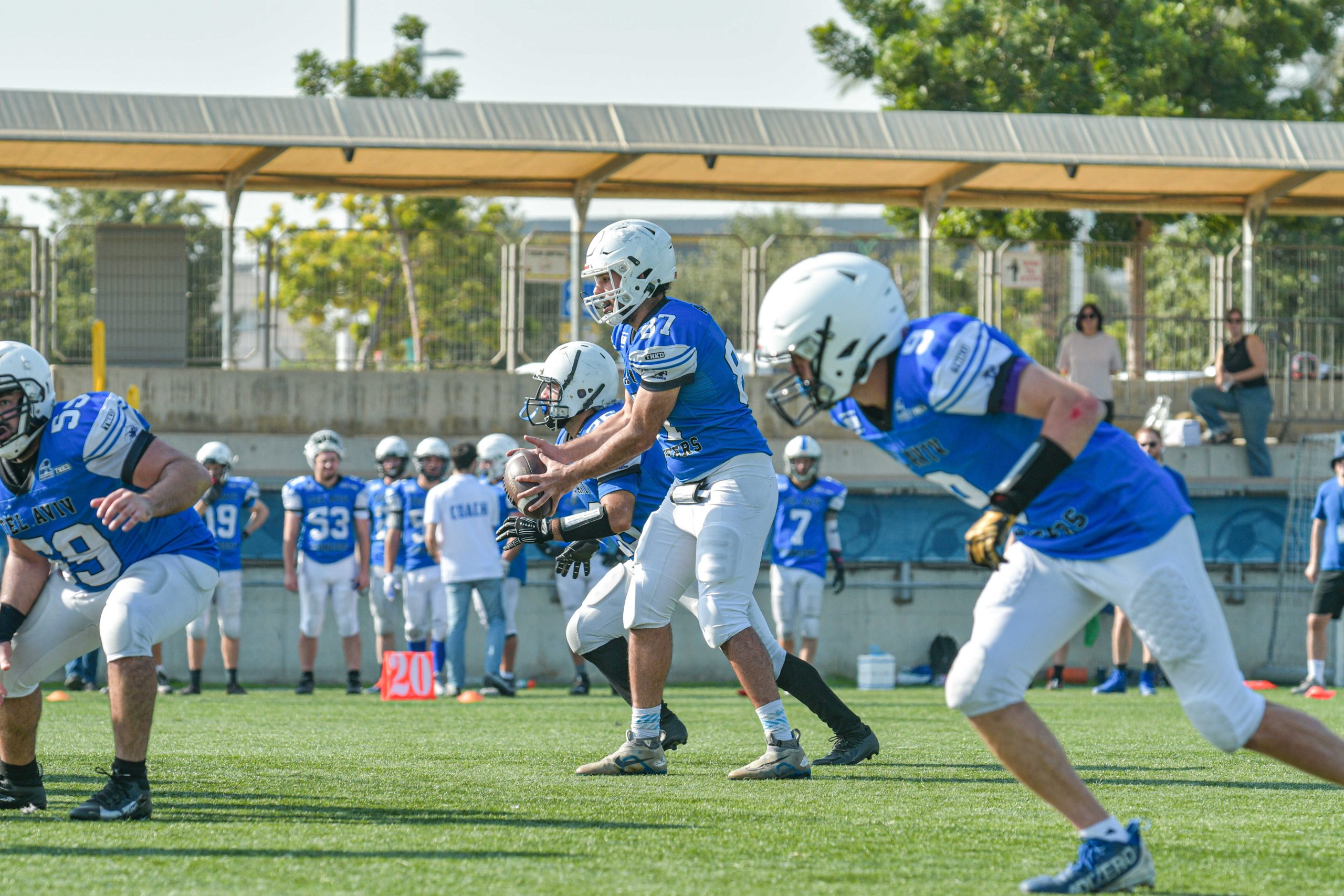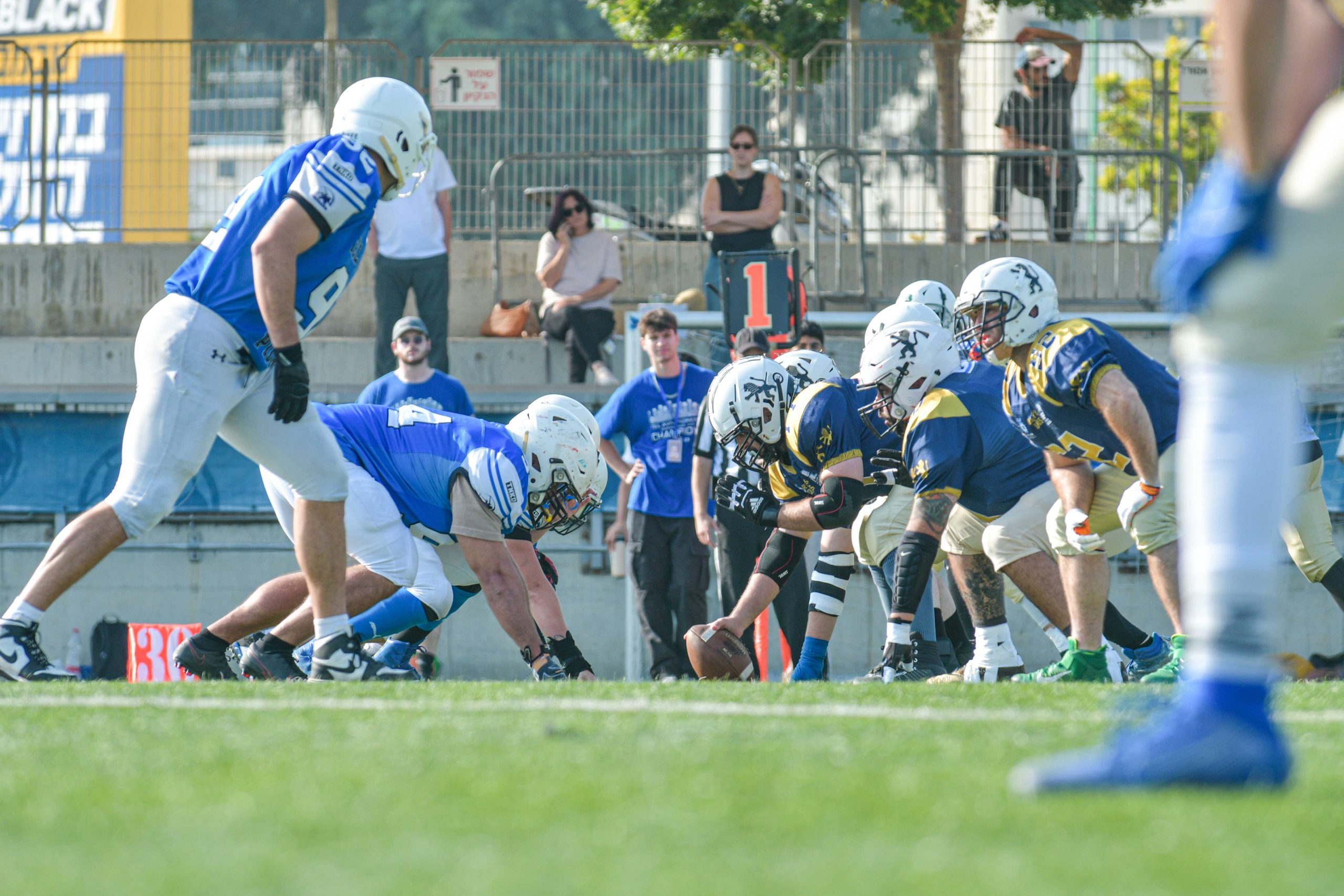 רמת השרון האמרס המשיכו את פתיחת העונה המרשימה שלהם עם ניצחון חד־צדדי 42:0 על בית שמש, במשחק שבו שלטו מהמהלך הראשון ועד השריקה האחרונה והבהירו פעם נוספת את פערי הרמות בין הקבוצות. כבר בדרייב הפתיחה הקוורטרבק דניאל איסטמן (5 ריצות, 22 יארד, טאצ’דאון ריצה של 25 יארד; 12/19 ל־153 יארד ו־2 טאצ’דאונים במסירה) לקח את המשחק על עצמו עם ריצת קוורטרבק ארוכה לאנדזון והוסיף גם את ההמרה, ובתוך דקות ספורות נועם מלול (9 ריצות, 33 יארד, 2 טאצ’דאונים) הגדיל את היתרון עם טאצ’דאון נוסף על הקרקע. רמת השרון המשיכה ללחוץ ברבע השני, כאשר מלול השלים טאצ’דאון ריצה נוסף, ואיסטמן עבר לאוויר עם מסירת טאצ’דאון לברק קציר (2 תפיסות, 24 יארד, טאצ’דאון) ולאחר מכן חיבור קצר נוסף לבן טובין (3 תפיסות, 55 יארד, טאצ’דאון), בדרך ליתרון מוחץ של 36:0 כבר במחצית. ההגנה של האמרס חנקה כל ניסיון התקפי של בית שמש, שאותה הובילו בהתקפה זזי פולד (1/9 ל־9 יארד, 2 אינטרספשנים) וג’סי צייט (0/6, 2 אינטרספשנים, סאק אחד), וסיימה את המשחק עם 70 יארד התקפיים בלבד וארבע חטיפות. ברבע הרביעי נחתם הערב במהלך שסימל יותר מהכול את המשחק כולו, כאשר דניאל מיכאילוב (אינטרספשן אחד, פאמבל כפוי) כפה פאמבל על ג’סי צייט והחזיר אותו 44 יארד לטאצ’דאון, שקבע את תוצאת הסיום 42:0. מלבד מיכאילוב בלטו בהגנה גם אחמד אבו דיב (סאק אחד ל־5 יארד), ניר הרבר ודייוויד איבשוק, כאשר רמת השרון סיימה ערב מושלם עם 222 יארד התקפיים, שליטה מוחלטת בזמן החזקת הכדור ובלי לספוג אף נקודה. זה היה ניצחון שממחיש את העומק, האיזון והעוצמה של האמרס, בעוד בית שמש תצטרך להתארגן מחדש לקראת המשך העונה.