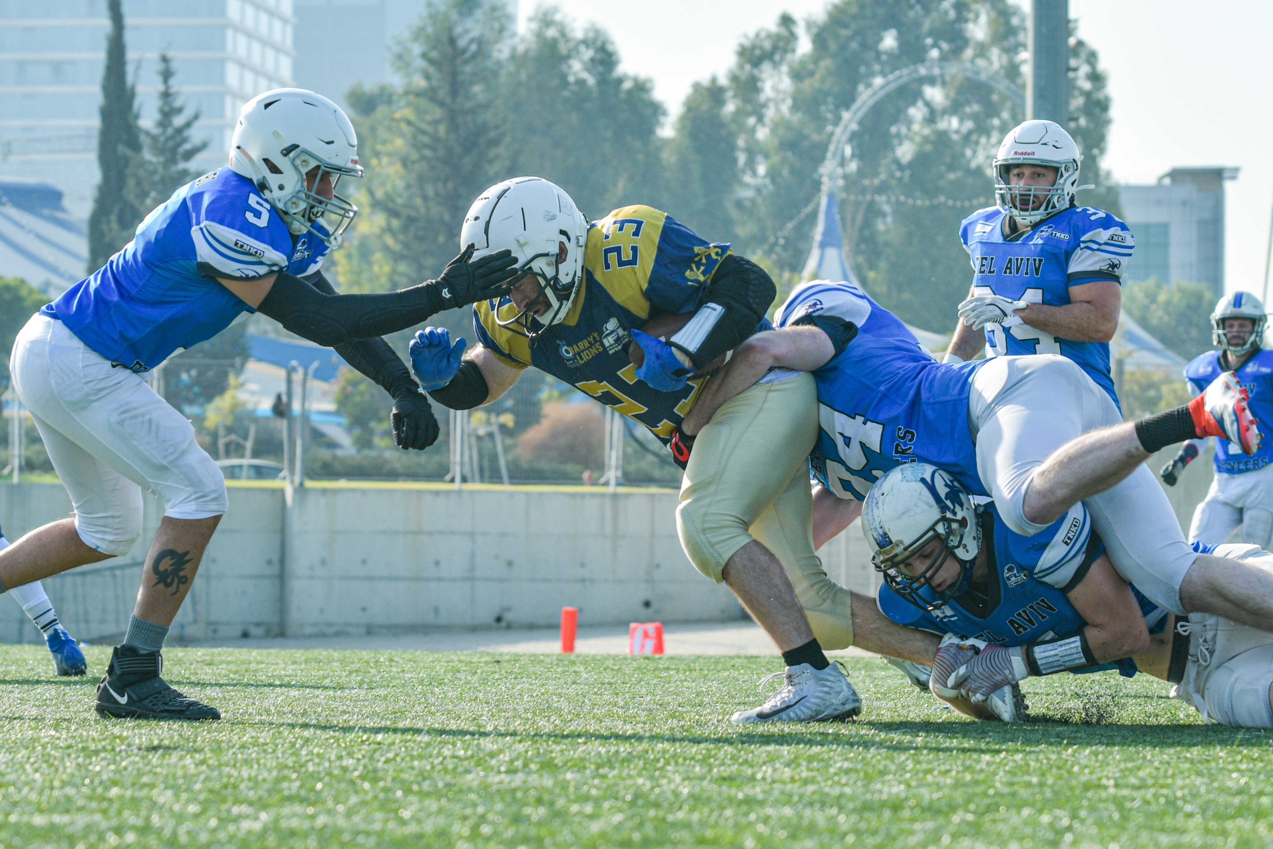 תל אביב פיונירס סיפקה את אחד הניצחונות הגדולים, הדרמטיים והבלתי נשכחים שנראו בליגת ה־IFL בשנים האחרונות, כאשר חזרה מפיגור עמוק וניצחה 42:36 את ירושלים ליאונס לאחר הארכה, במשחק שנע בין שליטה מוחלטת של ירושלים לקריסה מנטלית, והסתיים בקאמבק תל אביבי אדיר. במשך שלושה רבעים נדמה היה שזה הולך לכיוון אחד בלבד: ירושלים שלטה בקצב, ניהלה את המשחק בביטחון והכתיבה את הטון עם התקפה מאוזנת ויעילה. הקוורטרבק אהרון סילברברג (18/40 ל־160 יארד, שני טאצ’דאונים במסירה) מצא פעם אחר פעם את אלישע אבן־ישראל (9 תפיסות, 106 יארד, שני טאצ’דאונים), בעוד דוד פיטוסי היה בלתי ניתן לעצירה על הקרקע עם 14 ריצות ל־50 יארד ושלושה טאצ’דאונים, בדרך ליתרון 30:12 באמצע הרבע הרביעי ולתחושה שירושלים בדרך לניצחון יוקרתי נוסף. גם ההגנה הירושלמית תרמה למומנטום, כאשר אדם גבט (10 תיקולים, אינטרספשן שהוחזר 53 יארד לטאצ’דאון, פאמבל פורסט) סיפק רגע גדול שנראה כחותם את גורל המשחק ומעלה את ירושלים ל־36 נקודות. אלא שאז המשחק התהפך לחלוטין. תל אביב, שנראתה עד אותו שלב חסרת תשובות, מצאה לפתע קצב התקפי מסחרר והחלה לכרסם בהפרש במהירות. הקוורטרבק אוריה אהרון (24/38 ל־194 יארד, שלושה טאצ’דאונים במסירה וטאצ’דאון נוסף בריצה) לקח אחריות מלאה על ההתקפה, האריך דרייבים עם מסירות מדויקות ויצא בעצמו מהכיס ברגעים הקריטיים. היעד המרכזי שלו היה שחר רגב, שסיפק משחק שיא עם 12 תפיסות ל־100 יארד ושלושה טאצ’דאונים, והפך את הסקנדרי הירושלמי לחסר אונים ברגעי ההכרעה. בתוך דקות ספורות תל אביב מחקה פיגור של 24 נקודות, והמשחק, שנראה גמור, נכנס לכאוס מוחלט. ירושלים התקשתה לייצר עצירות בהגנה, ביצעה טעויות קריטיות, ולא הצליחה להעמיד דרייב התקפי שיסגור את המשחק, וההתמודדות נגררה להארכה בשוויון 36:36. בהארכה הלחץ כבר עבר צד: ההתקפה הירושלמית נתקעה ללא נקודות, בעוד תל אביב המשיכה באותו קצב אגרסיבי וחתמה את הערב עם ריצת טאצ’דאון של שמואל טאייב (ריצת הכרעה של 3 יארד) שקבעה 42:36 והשלימה מהפך שנכנס מיד להיסטוריה של הליגה. זה היה ערב של אופי, אמונה ועמידה בלחץ עבור תל אביב, שמסרבת לוותר גם כשהכול נראה אבוד, ומנגד הפסד כואב במיוחד עבור ירושלים, שהובילה כמעט לאורך כל המשחק אך יצאה בידיים ריקות. משחק כזה לא רק משפיע על הטבלה – הוא משנה מומנטום, בונה זהות, ונכנס לפנתיאון כמשחק שמגדיר עונה שלמה.