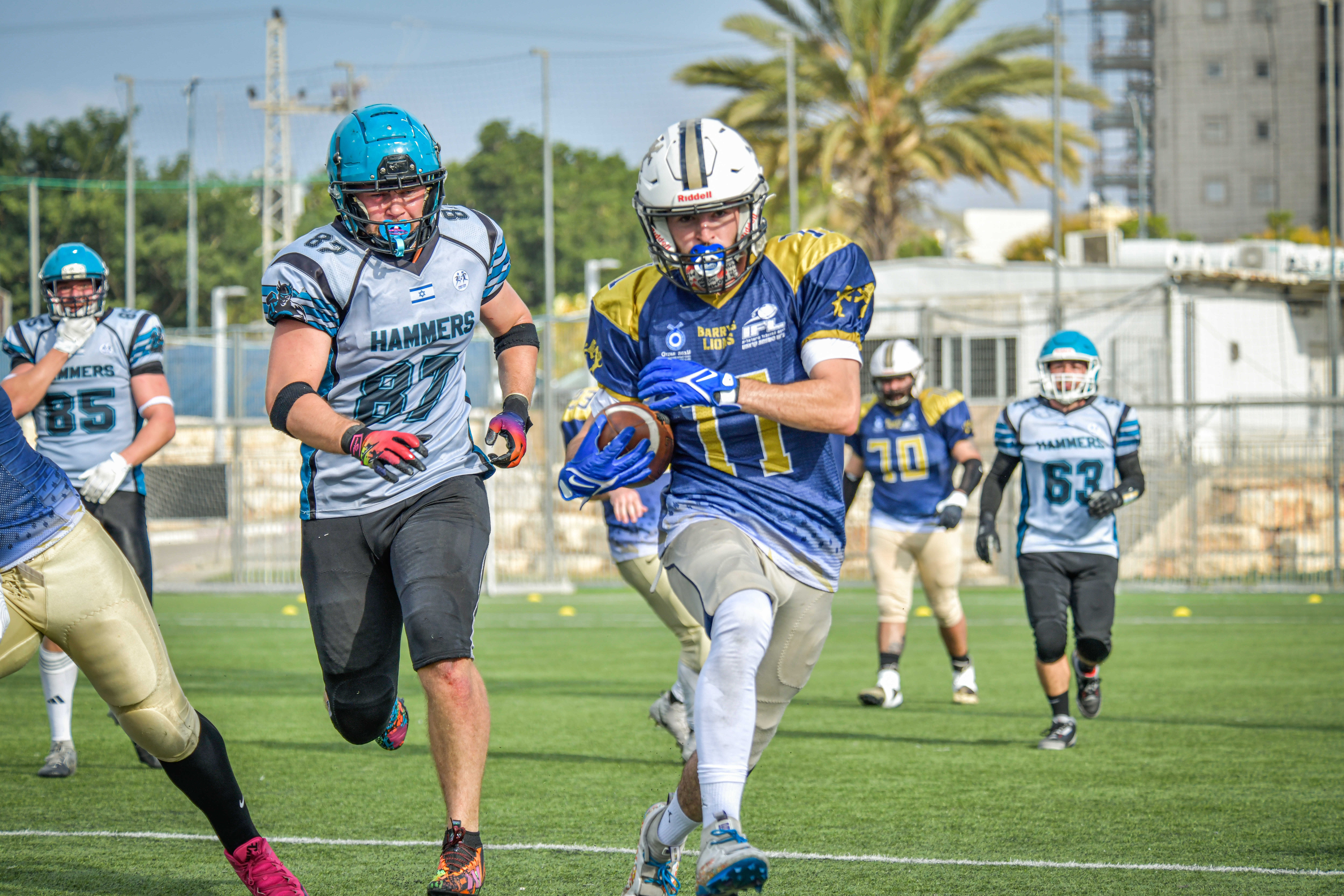 בצד ההגנתי של הליאונס, יואב בראודה (12 תיקולים) היה הבולט עם נוכחות בכל מהלך, ואליו הצטרפו לבב מלר (8 תיקולים) ואורייה כהנא (5 תיקולים, מהלך של איבוד יארד) שניסו להחזיק את הקו הקדמי מול לחץ בלתי פוסק. אך הפער בעומק ובכימיה הקבוצתית עשה את שלו, וההאמרס ניצלו זאת עד תום.